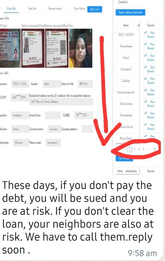 Tincy Joseph being harassed by a loan app company | Photo courtesy: Tincy Joseph