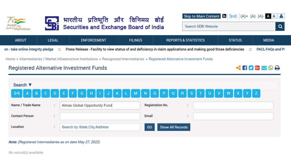Almas Global Opportunity Fund claims to be an Alternative Investment Fund (AIF). However, as of the night of 26 May, Almas Global’s name cannot be found in SEBI’s list of registered AIFs. How then did the government allow a non-registered AIF to participate in the bid? How did the government arrive at a figure for Almas Global’s maximum permissible investment limit? Who was the independent chartered accountant/statutory auditor that issued a certificate of this investment limit for Almas Global? Was the “statutory auditor” determined based on the statutes of the Cayman Islands (where Almas Global is registered), or as per India’s statutes?