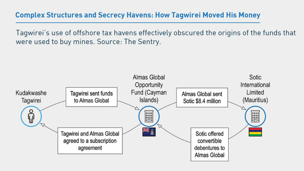The Sentry reported that Capital Horizons, a Mauritius based financial advisory firm with Magalingam Reddy and Shaan Kundomal at its helm, advised and helped Tagwirei create a complicated corporate structure to avoid scrutiny by banks and regulators. On the advice of Shaan, in October 2019, Sotic issued 9,000 convertible debentures to AGOF. Capital Horizons then arranged a subscription agreement and an assignment deed between Tagwirei and AGOF, which then sent $8.4 million to Sotic to acquire a 65 per cent stake in the company.