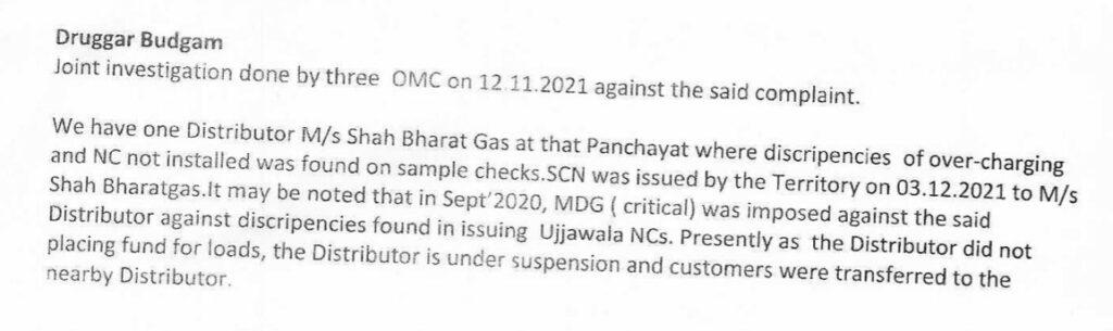 "As part of Covid relief, when the Prime Minister announced that BPL families would be provided free cooking cylinders for three months, we found that many people started getting around 850 rupees in their bank accounts. But they never got the promised free cylinders. Many women went to the bank to enquire why this money was credited to their accounts and the bank authorities informed them that this money was deposited under the Ujjwala scheme. Many other women alleged that there was massive corruption. So, we wrote to the Department of Food and Civil Supplies & Consumer Affairs of J&K. The Lieutenant Governor's Secretariat also sought a reply on the issue and a report on this was submitted by the State Level Coordinator, Oil Industry, Jammu and Kashmir. The documents that we got related to this reveal that money was charged by the local agencies when they had to give the LPG for free, and action was initiated against some distributors. They were asked to pay a fine," says Mushtaq Ahmed.