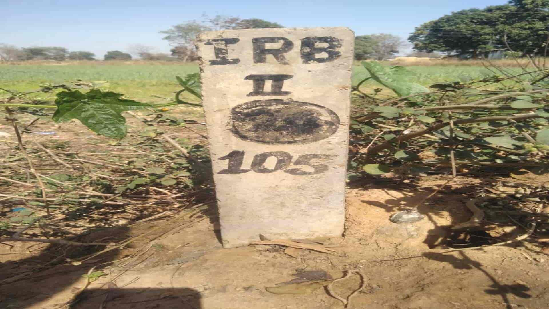 Pillar erected by the Indian Reserve Battalion (IRB) at Paraswada village in Gondia District of Maharashtra | Photo courtesy: Raja Muzaffar Bhat“A local PMAY beneficiary, Mahindra Gajbeye on 25.02.2021 had started construction of the house as he was allotted the first instalment of Rs 20,000 under the government scheme, but the cops from IRB 2nd battalion stopped his work as they alleged that he had encroached upon their land. The other beneficiaries also could not go ahead with the construction. From 2015 till date, people are not allowed to go ahead with any construction, and almost 35 families live in miserable conditions, but they are not even allowed to utilise the government money meant for the poor and the homeless,” added Hanvantay.